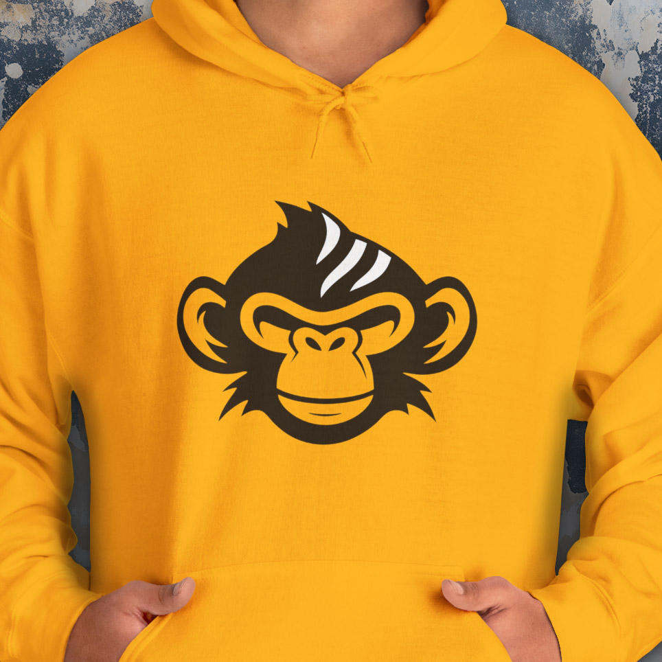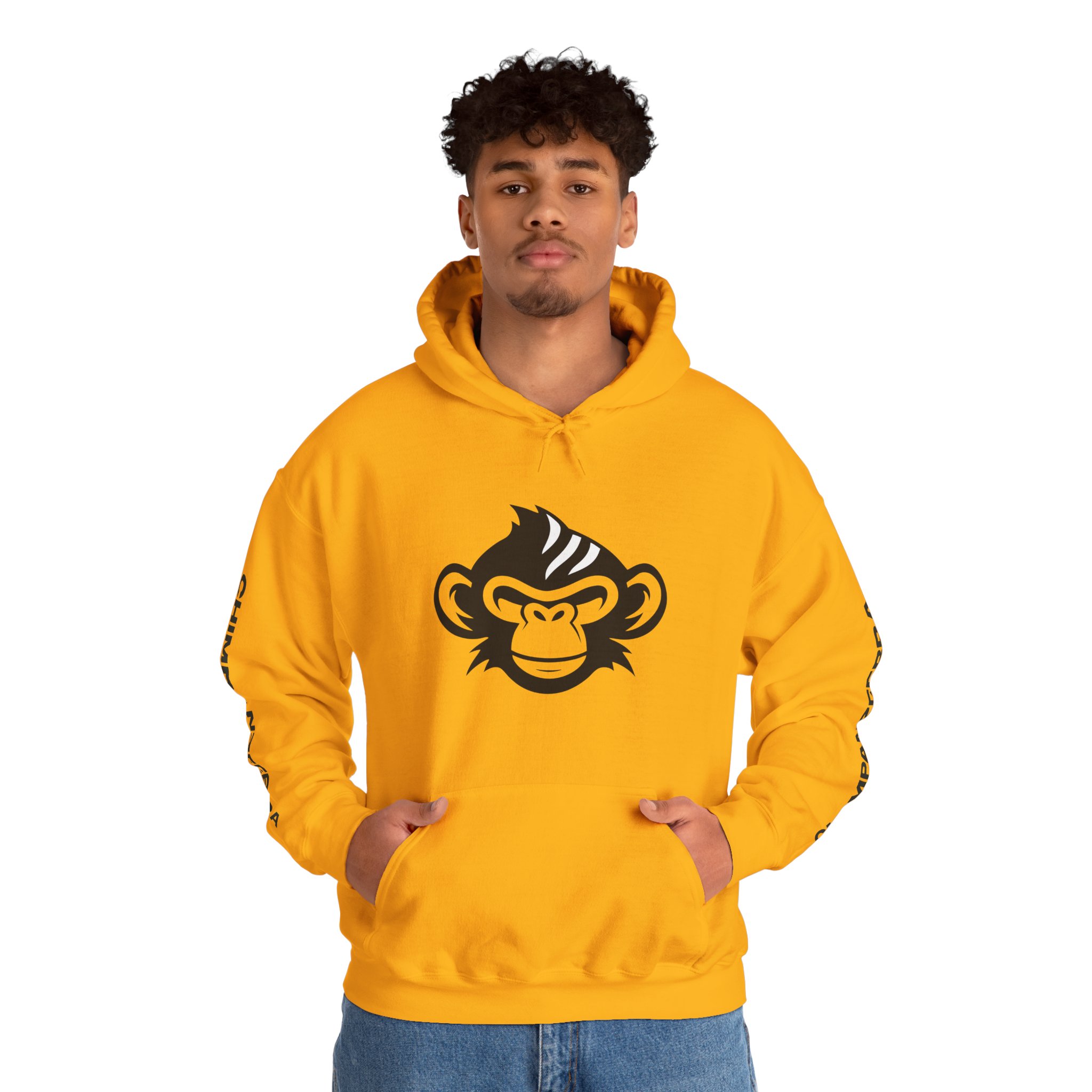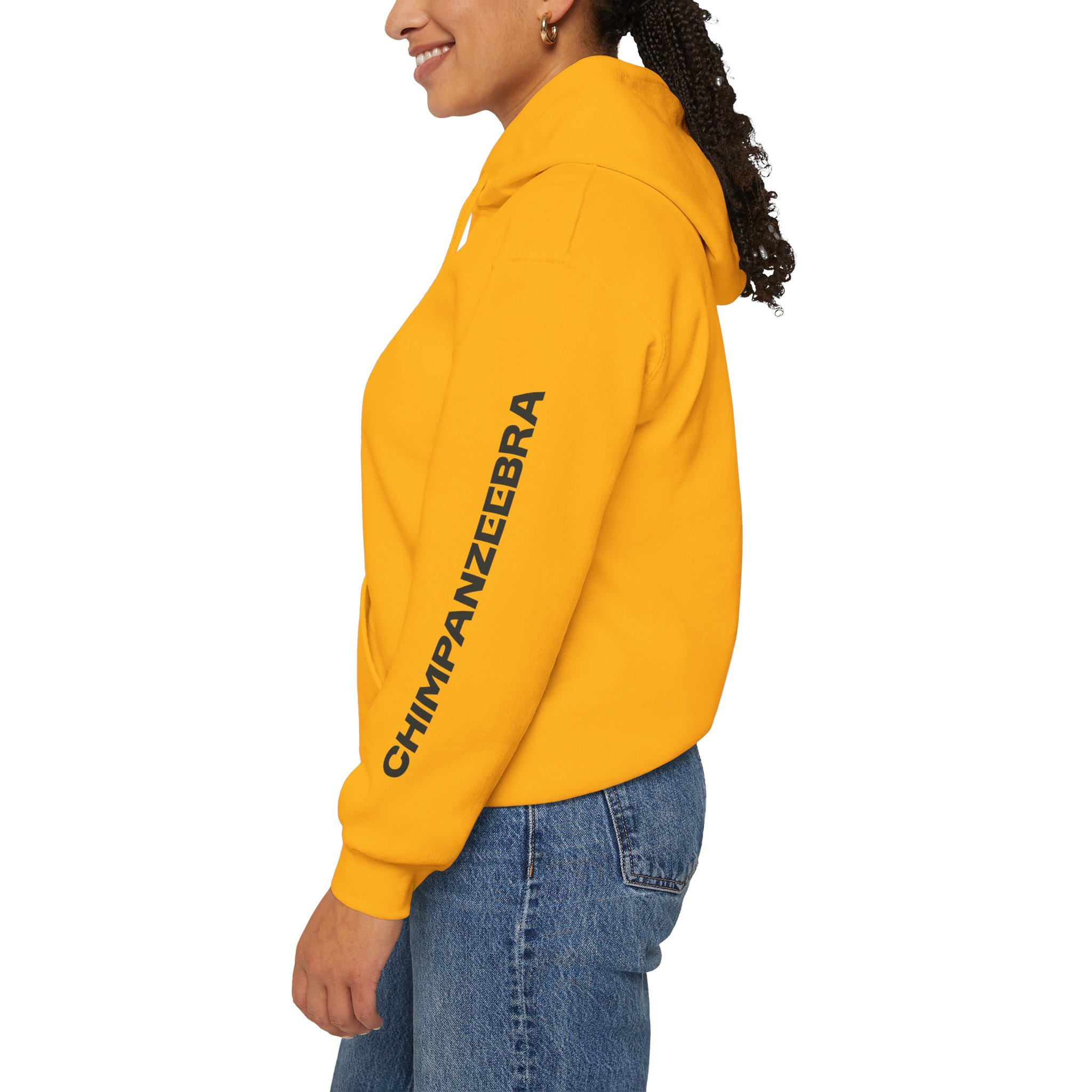 Step into the wild with the Chimpanzeebra Hoodie, featuring a bold illustration of a black chimpanzee’s head marked by three sharp white stripes—an imaginative hybrid of chimpanzee and zebra. This surreal crossbreed design blends primal instinct with visual intrigue, perfect for fans of animal mashups, alternative fashion, and genre-defying streetwear. Each sleeve is printed vertically with “CHIMPANZEEBRA” in black, adding a distinctive branded detail that reinforces the hoodie’s unique identity.