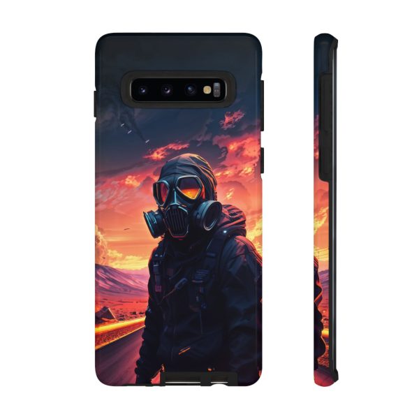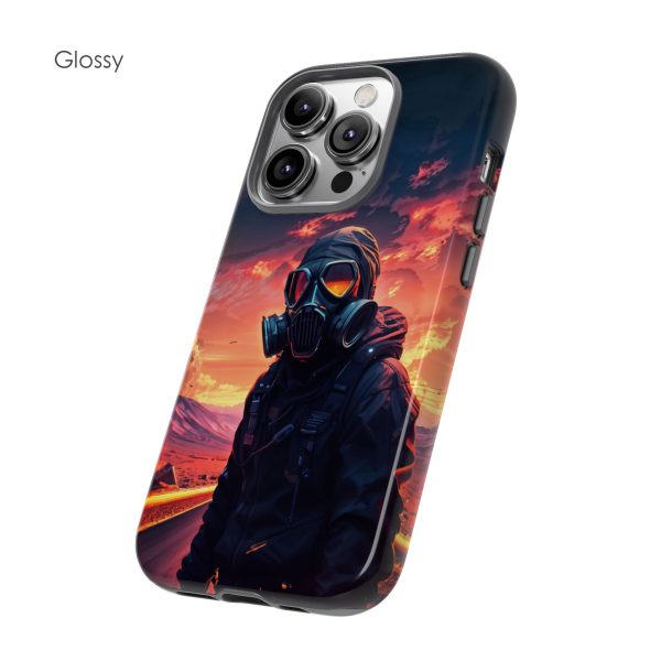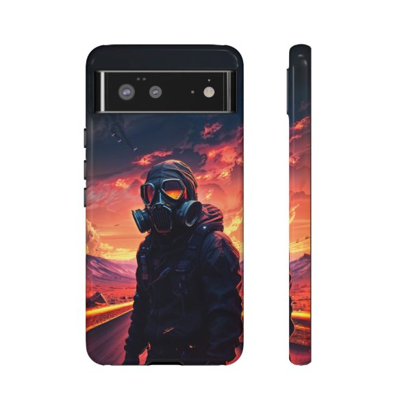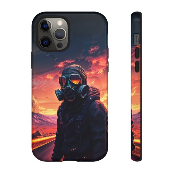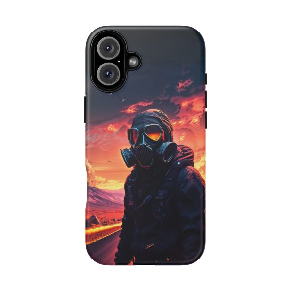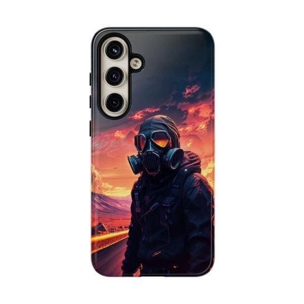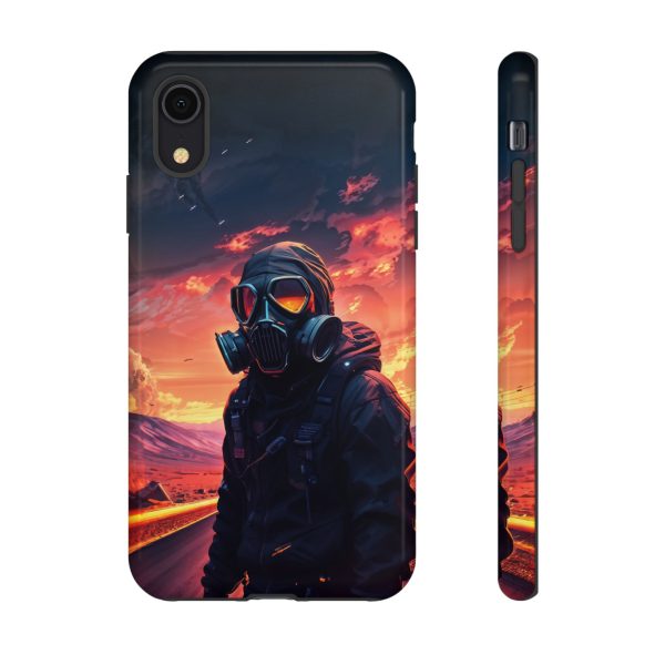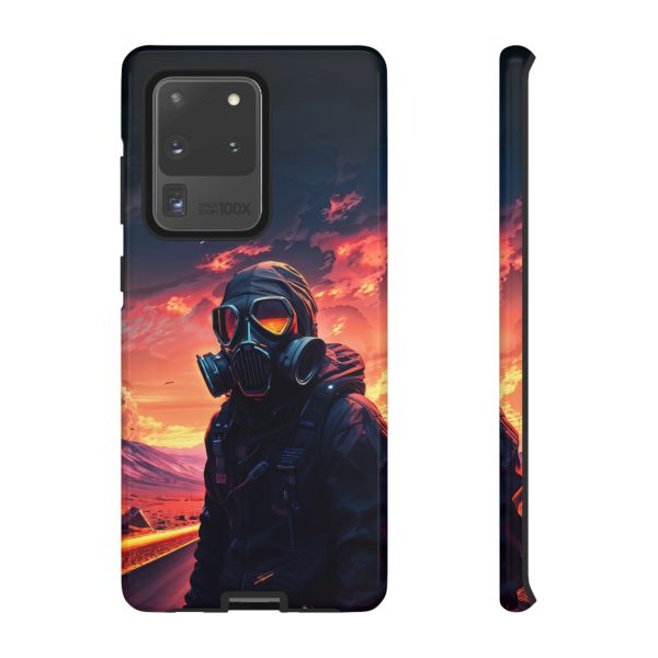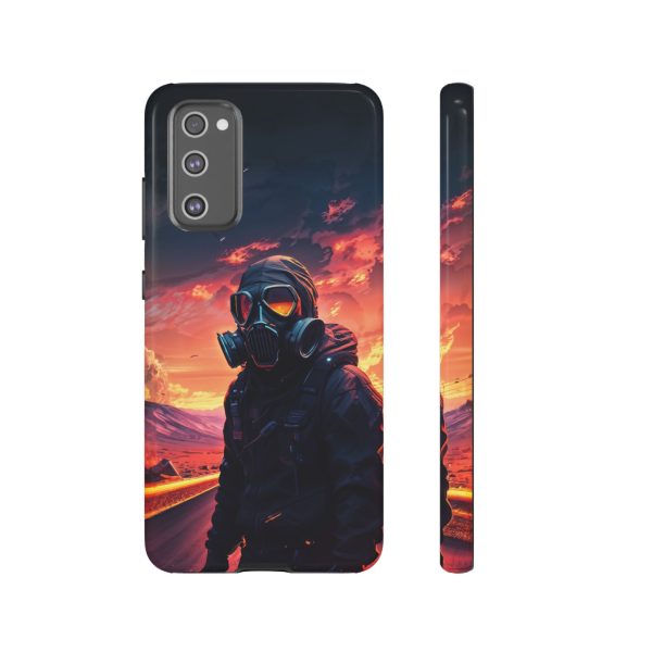 Prepare your device for the apocalypse—this rugged phone case merges high-impact protection with a hauntingly cinematic design. Featuring a lone survivor in a tactical exo-suit and futuristic gas mask, the artwork captures a moment of defiance on a scorched highway beneath a burning sky. Shades of molten orange, crimson, and violet stretch across the horizon, evoking themes of isolation, resilience, and post-apocalyptic beauty.