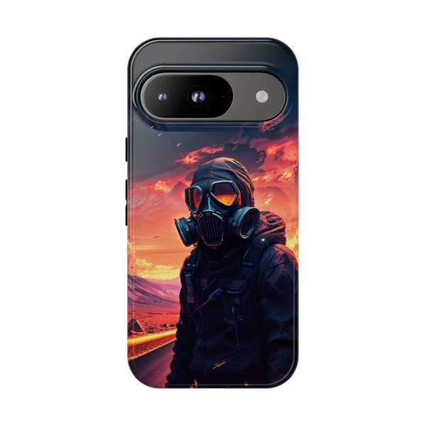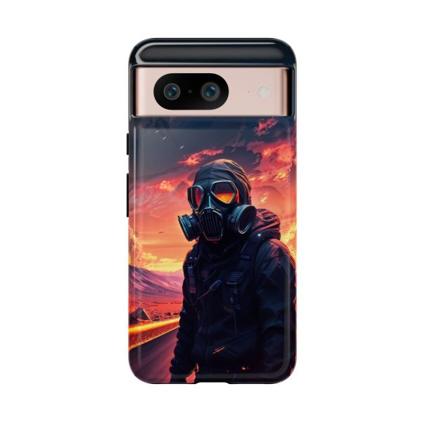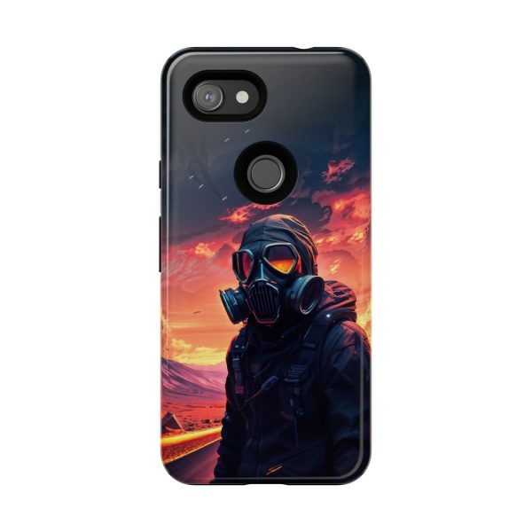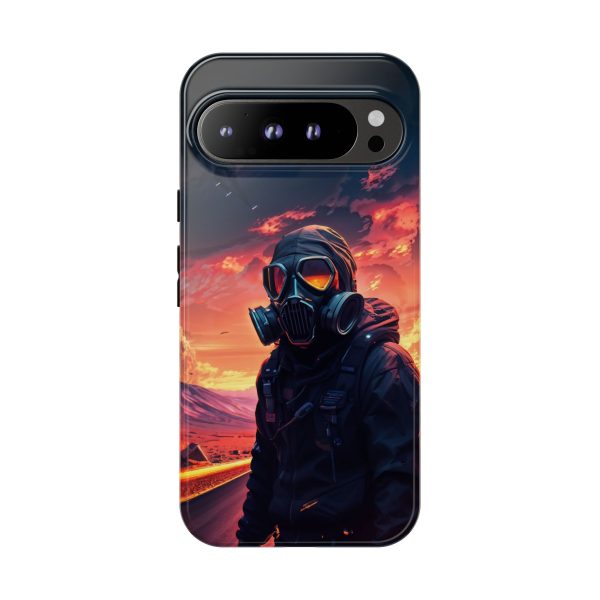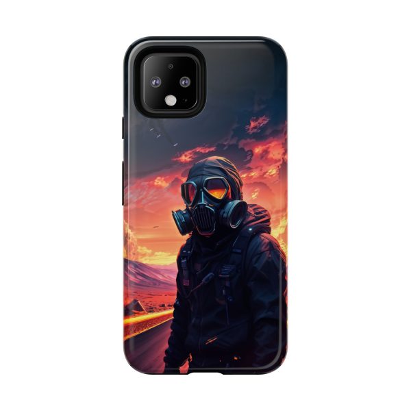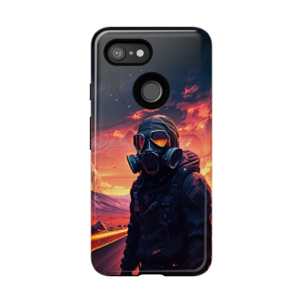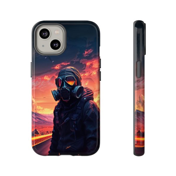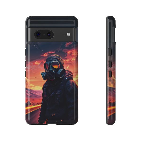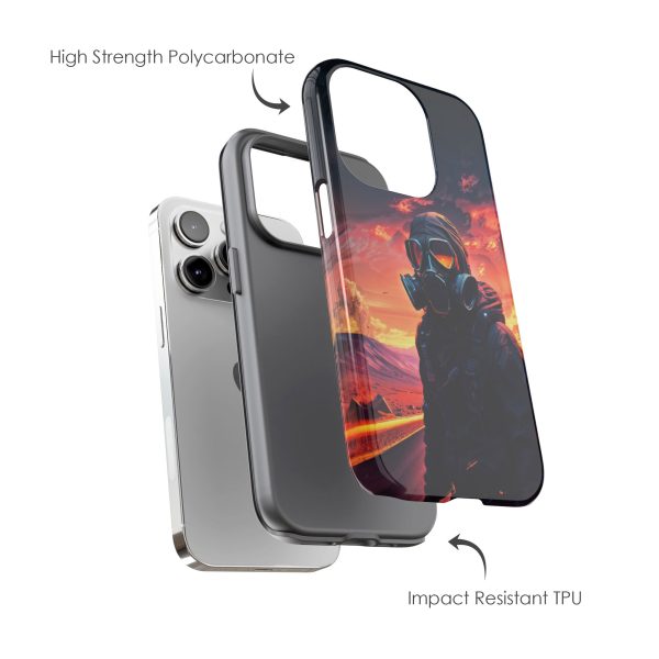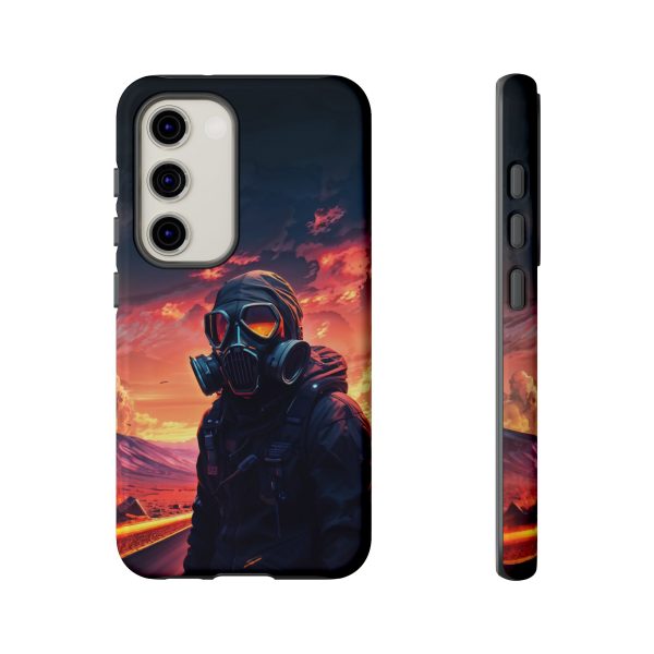 Prepare your device for the apocalypse—this rugged phone case merges high-impact protection with a hauntingly cinematic design. Featuring a lone survivor in a tactical exo-suit and futuristic gas mask, the artwork captures a moment of defiance on a scorched highway beneath a burning sky. Shades of molten orange, crimson, and violet stretch across the horizon, evoking themes of isolation, resilience, and post-apocalyptic beauty.
